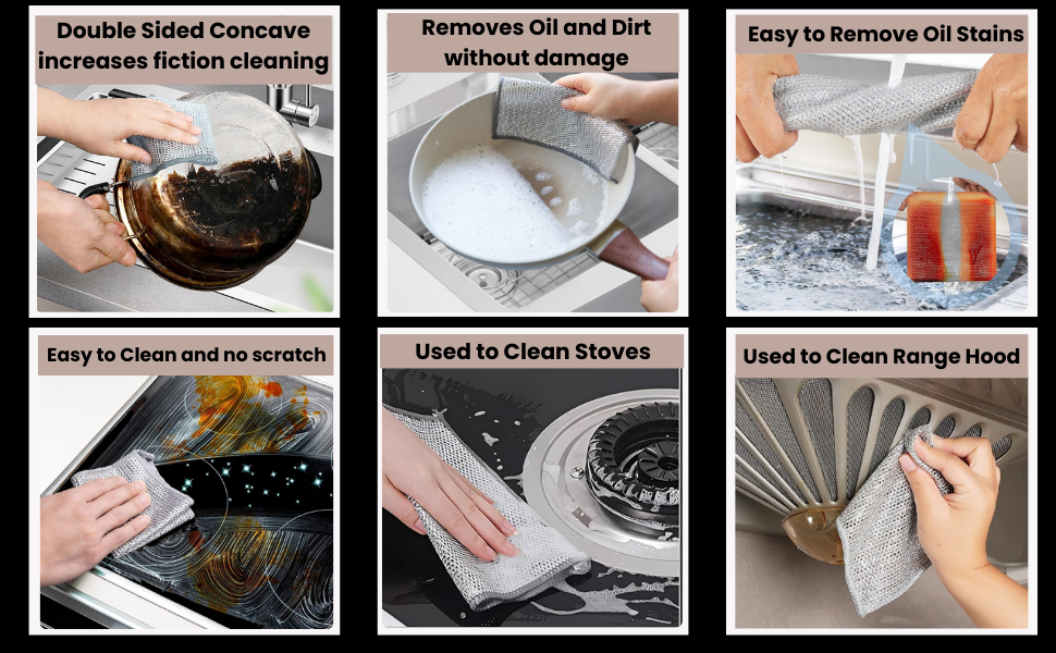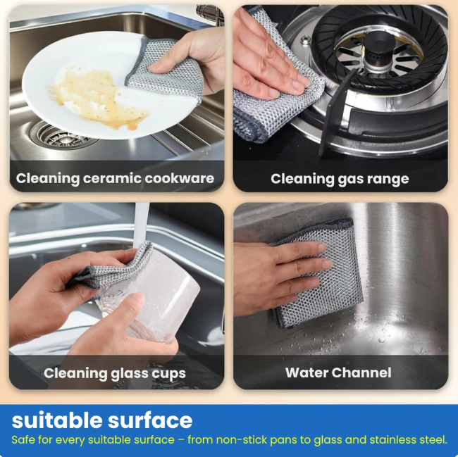 ✅ Versatile Usage: This all-purpose Wire Dishwashing Rag is not just for dishes. It's a durable and reusable marvel that can wipe down kitchenware, cars, electronics, glasses, jewelry, stainless steel, home appliances, furniture, and more.